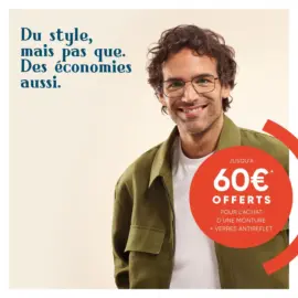 Jusqu'a 60€* offerts sur l’achat d’une monture + verres antireflets- catalogue